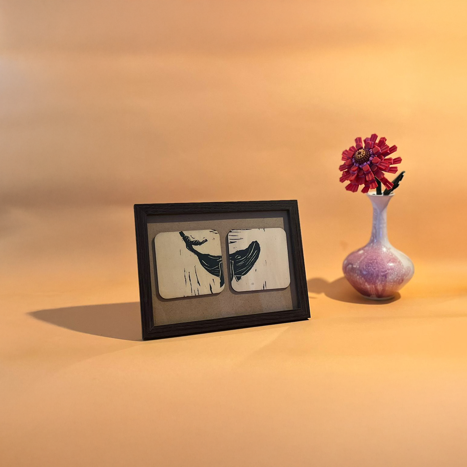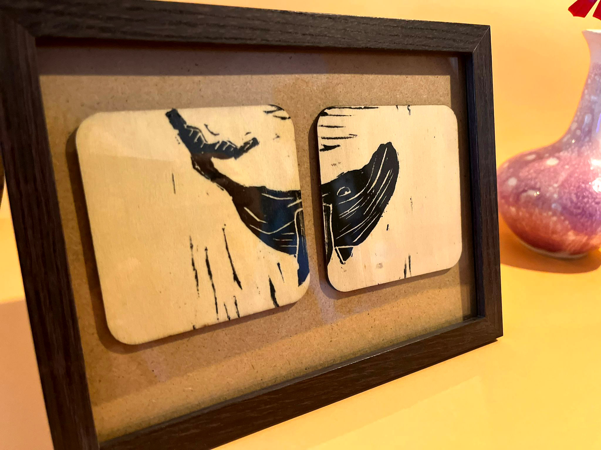 Deux pièces de bois et de la linogravure Couche fine de vernis pour protéger l’impression Vendu sans cadre